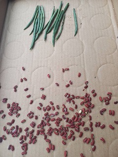 小豆 青いのを取って茶色になるか試験 @ほうれん草の仲間 ⓶トアプー(四角豆) B人参 Cわけぎ Dなす