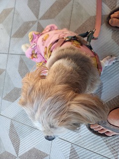 ルンちゃん車において手続きへ 書類出して我だけ車に戻り、ルンちゃんと近くの芝生での散歩