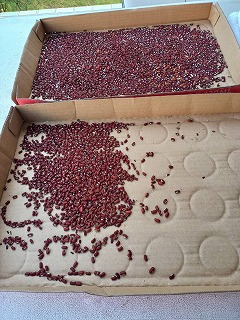 帰宅しルンの足を拭いてから、今日も小豆の収穫 (チリも積もれば山となる・・・)