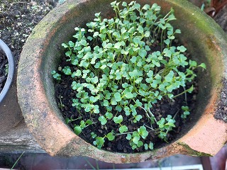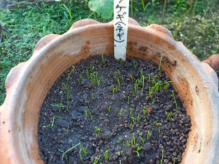 寒いけれど芽が出て来たのは良い事だー (グリーンパックチョイ=ほうれん草に近い わけぎ(ネギ))