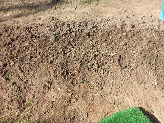 雑草取り兼ねての、鉢から路地への土地慣らしを・・・太陽を浴びながら家の中よりも温かい! 植替え準備完了!