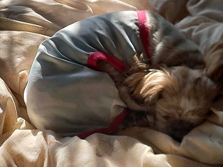5時半起床今日もなんと気温下がるばかりだー 21.8℃ タイの犬だからルンちゃん寒いだろー