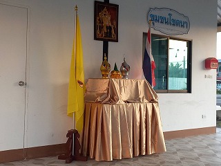 散歩 丸まっていたんだが元気良いのに励まされながら・・・広場にラーマ9世誕生日(12月5日)の祭壇