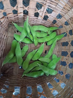 散歩でごみ収集車を見送る 枝豆 もっと膨らんで欲しいが食べれるものを収穫