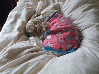 (アサイチ)見てから散歩へ 寒いけれどルンちゃん元気で励まされるなー おやつあげ足拭いてなんと1度下がっている