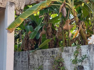 隣のバナナ 葉っぱがでかくなりわが家に来ていたんだが、ようやくカットしているようだ!