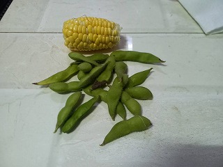 ルンちゃんの仕事して休憩後、枝豆の撤収と種を取るように 5回目の収穫トウモロコシも・・・
