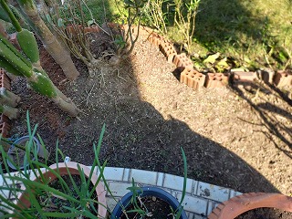 2025/12/25 木 ベランダ前の雑草取りとそこへ土入れ作業! 枝豆撤収(次回へ期待!)