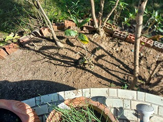ベランダ前の雑草取りとそこへ土を入れて。10時半終了
