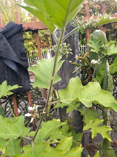マンゴー 緑の実が出來て来た 途中の家 もう休憩スタイル ナス と思うが・・・