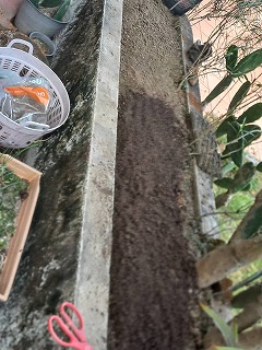 9時半過ぎリハビリも兼ねてベランダ前の畑の耕し 耕した土を左右の手で細かにしながら・・・