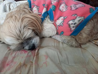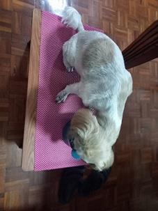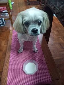 12時半帰宅して、ルンちゃんの遅めの昼食 ミルクとドッグフード 完食してからお昼休み・・・
