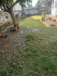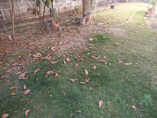 落ち葉がいっぱいで少し片づけしてから、手伝ってもらいながら そして丁寧に水撒き!