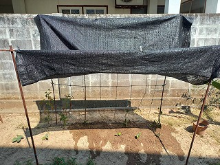 ゴーヤの所はまともに西日を浴びている・・・遮光ネットを・・・