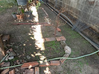 9時過ぎにリエさん買い物へ 作業開始! 落ち葉拾いしながら雑草取りと側溝の土を除く