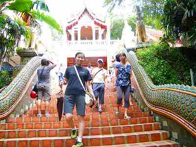 そして(ワット・ドイ・ステーブ)へ 洪水の事もあってか、タイ人は少なく日本人とファランの姿が多く見られる中、入場料でタイ人価格と外国人価格の違いを言われたが、タイの車免許証を見せて我ら2人はタイ人価格で・・・