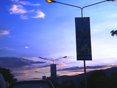 今日の運転手ガイドのケンさんに電話して、予定より早くホテルへ向かい(ドユワンタワンホテルで8時40分待ち合わせることにして、自分らは2人で8時に家を出て(る・メリデアンチェンマイホテル)へ向かうが、チェンマイーメージョー道路のリンピンスーパー越えたところで車がまったく前に進まなくなってしまった。