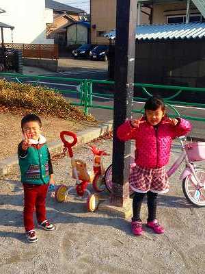 孫2人 元旦近くの公園でのメール