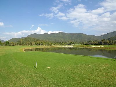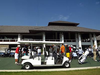 我らは4組目 A武さん・M山さんの3人でスタート いきなり良いドライバーで、残り170ヤード 7番ウッドでグリーンを狙うが、天ぷらになってしまった。