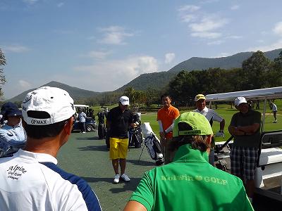 アルパインの会員を待ちながら、練習して手続きしてから、開会 プロの(T田選手)紹介の後いつものルール説明と今日のホール ニアピン・ドラコン・・・