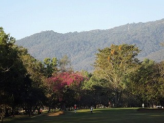 今日は珍しく天気も良く、霞もなく山がすっきり見える中ではあるが、ゴルフのほうはぼやけているようで大叩きもあったり、バーディーもあったりと波の激しいゴルフになってしまったし、3桁いってしまった。
