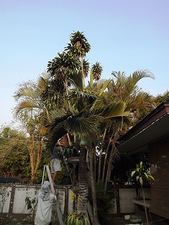 17時になって疲れてきたので、今日はこれまでと・・・ そして昨日約束していた椰子の木? その伐採に今日は4人できてくれる。
