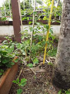 小さいが奥のほうにトマトが