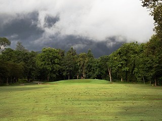 朝方は曇り、4・5ホールと霧雨、曇り空だが湿気が多く蒸し暑い、夕方・夜と雨