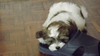 11時近くになって見えられ、ルンとの初対面なのだが、なついて足元にお座りしている。