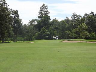 最終18番 パーで上がろうとしたのだが、3打目右の木から140ヤード それを避けてスライスで