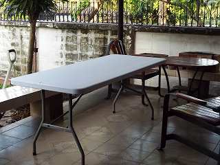 10時にはM薗夫妻が来られ、テーブル運搬を、車お願いしたので、2人でメコーへ買いに出かけ