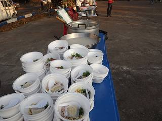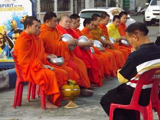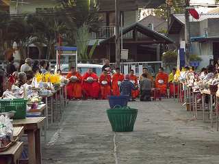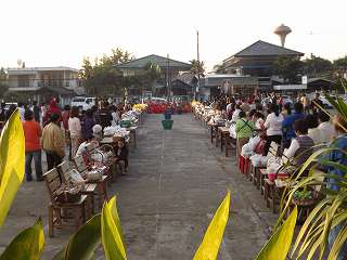 6時半前に起床 朝食を済ませ7時半近くに、ムバーンの広場へ(11人のお坊さんタンブン)へ。