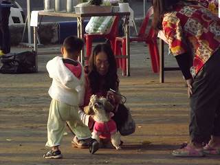 買い物から理恵さん帰宅して、餅があったとお雑煮 その前に庭でルンの散歩を付き合いながら