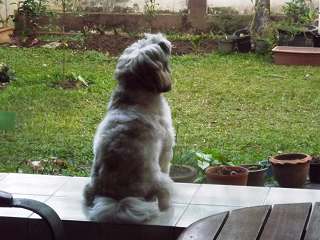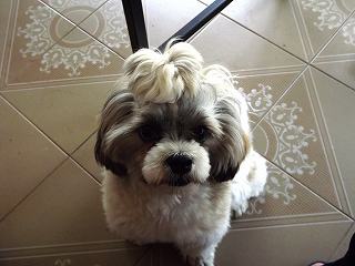 8時になってルンの後追いで庭に出て、サンドウエッジでのゴルフ練習。