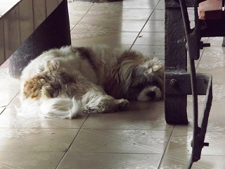 6時起床 風があって少し肌寒い ルン・そして我らの朝食が終ると同時に、ルンは庭へ。