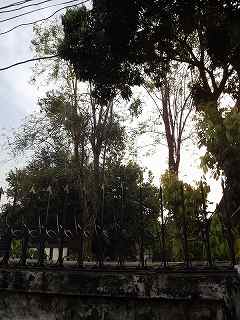 行ってみると、右隣の家の木の高さ10m以上もあるところで猫がいるではないか!