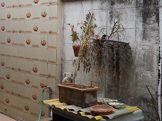 そして庭に出て、蘭の花 2鉢に花が咲き始めたのを写真に撮っていると、もず かな?