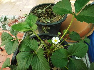 | イチゴの花が咲く まだ可能性はあるかなー |