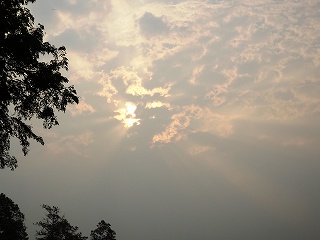 6時半外は暗い、太陽は見えるが珍しく曇り空