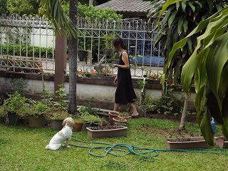 いし、さわやかでルンを庭へ 一緒についていく。