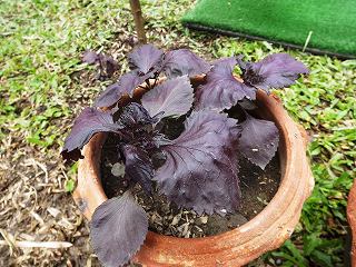 8時には庭に出て、PWでのゴルフ練習後、(芝切り作業)しながら赤紫蘇を路地に植え替え。