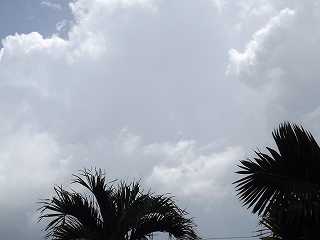 青空は少しで雲が多い、午後から小雨が降ったり止んだり、夕方晴れ