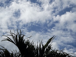 夕方空を見上げると、朝は曇り、ゴルフ途中は雲が無くなり晴れ、そして再び雲 夕方晴れ???
