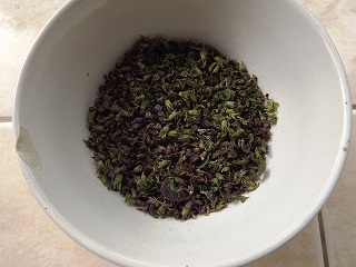 赤紫蘇の実を集めてみると、結構集まった、味噌と砂糖少々とみりん それに唐辛子を入れて