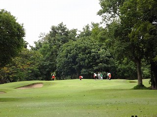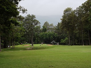 雲が多くてゴルフには最適、9・10・11・12ホールと少し雨