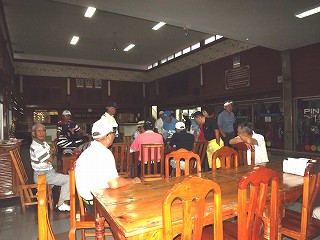 受付の所で、ゴルフするかどうかで悩んでいる人が多い。