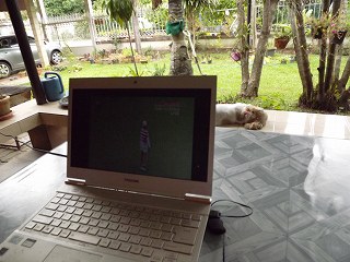 ベランダへパソコンを持ち込み、日本女子ゴルフを観戦しながら待つことにする。