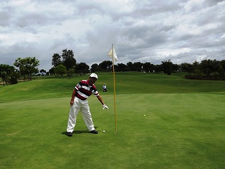 3番目、I上さん・O友さん・T田さんの4人、スタートホール何とか4オンの1パットのパー。