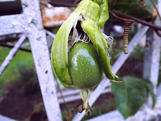 庭に出て、パッションフルーツのチェック やはり昨日の5個も全滅だったー。