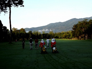 5人(H部さん・O友さん・M川さん・M山さん)集まったが、1番コースからはキャディーの実習生のス